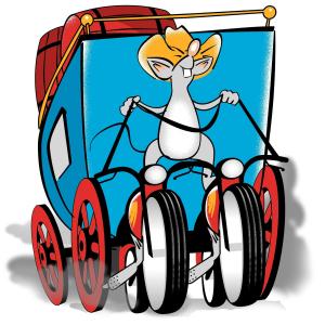 So he went back to the shops to buy a motor bike. Megabyte had fun whizzing really fast. But there wasn't much room to store food.